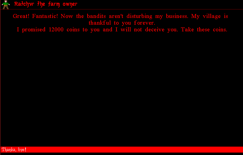 山賊やっつけて12000Goldなんてオイシすぎて怪しいが、やる。