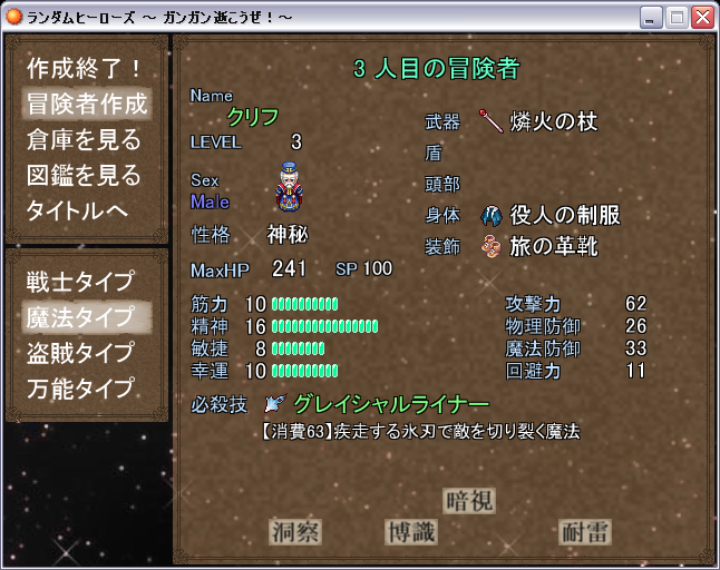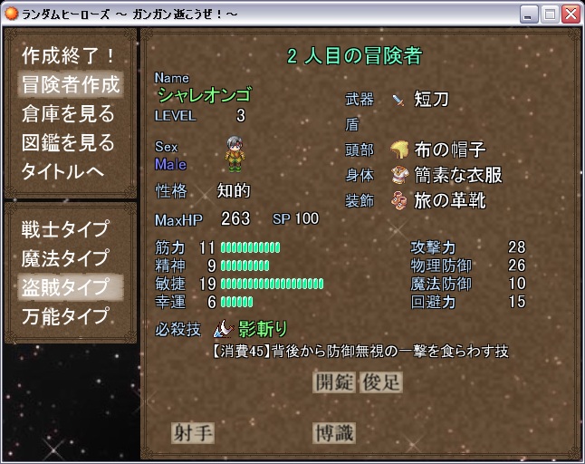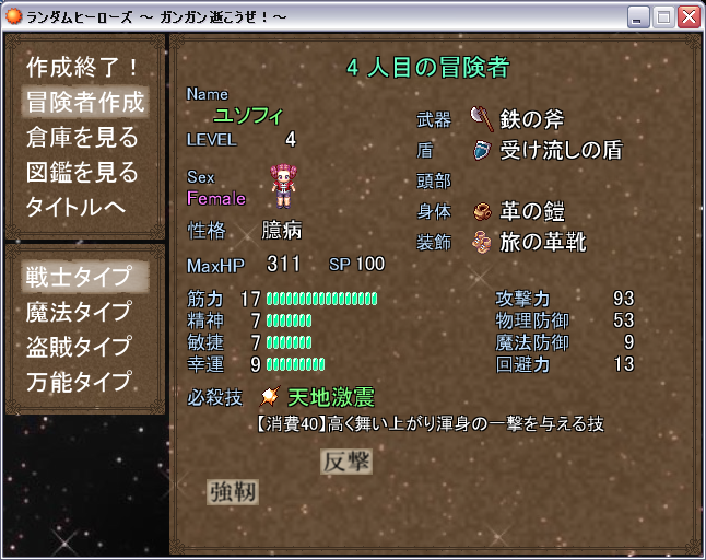 『ランダムヒーローズ』、2人目の冒険者を作成。