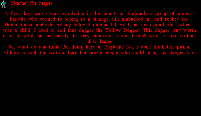 Ckarbolという男が、おじいちゃんの形見のイエローダガーを取り返してくれってさ。