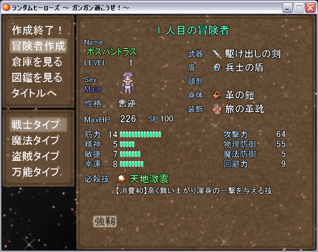 ランダムに作成される冒険者をひとりずつダンジョンに派遣し、謎を解明するゲーム。